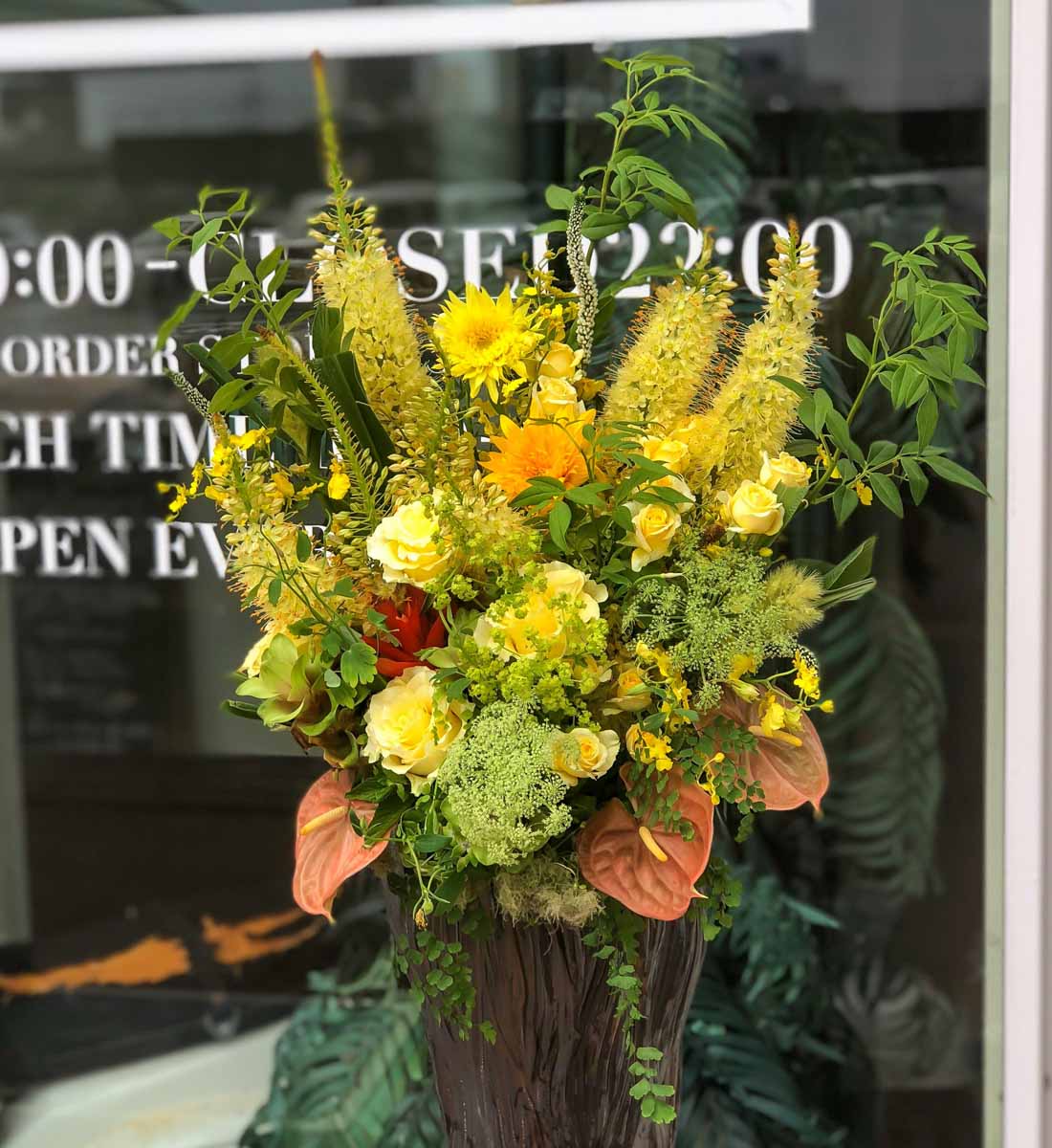 太陽を沢山浴び大きく育った花のステムを活かして作るbouquetは力強く、華やかでゴージャスな演出をしたいシーンなどにお勧めです。写真撮影などが行われる会社の送別会やコンサート会場演者様にお渡しするGIFTなどでは特に人気です。